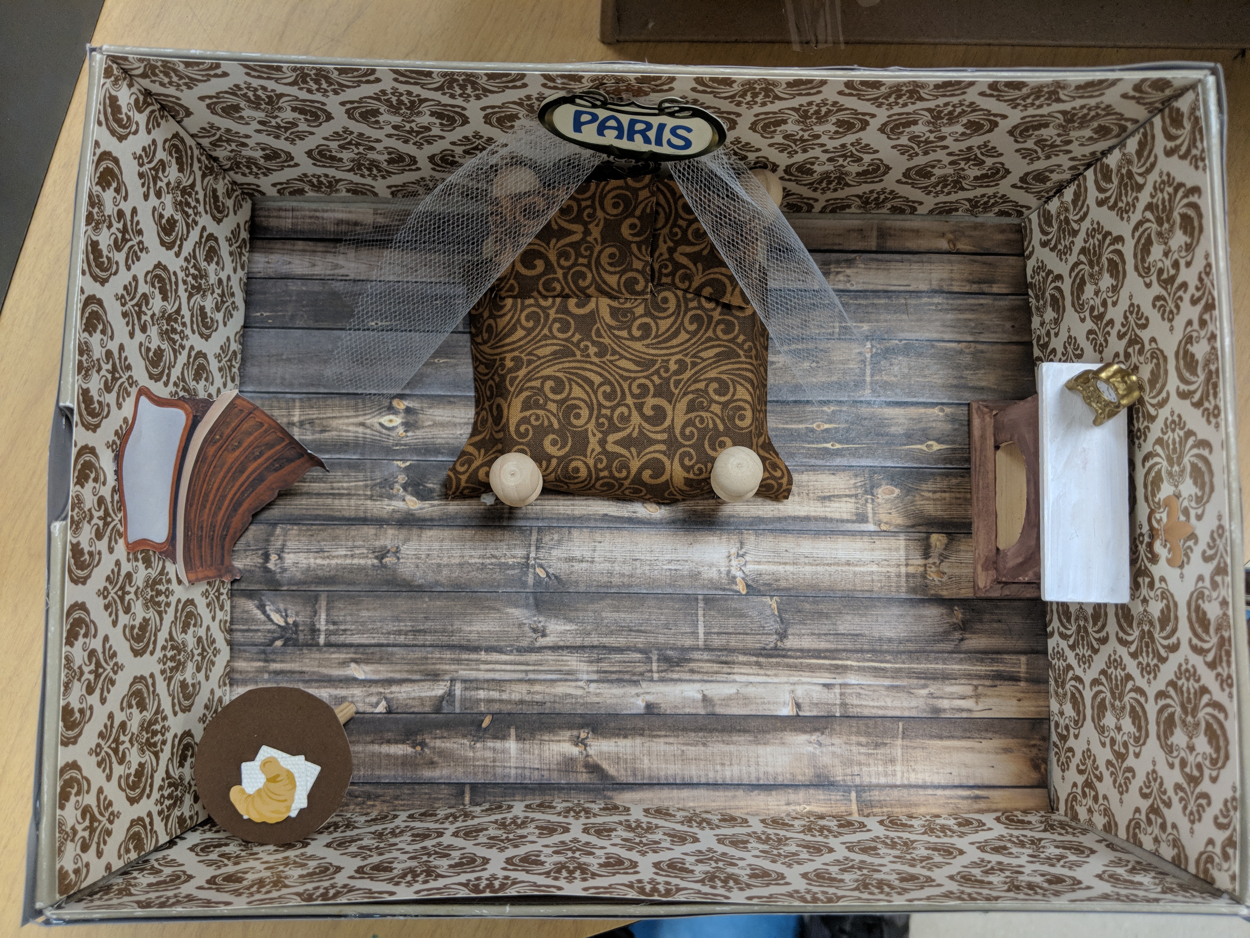 This is a project where students construct one (or more) rooms of a château modeled after a room (or rooms) in the châteaux they have learned about in class. The castles we cover are found in the Loire Valley in France. This is a student favorite! It also covers ACTFL World Language Standards for Culture (2.1 and 2.2).